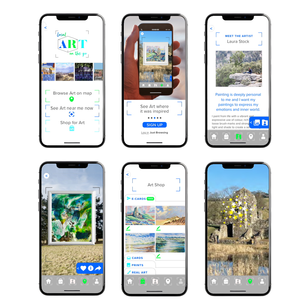 Logo, UX and UI design for Art Aid augmented reality art launch.