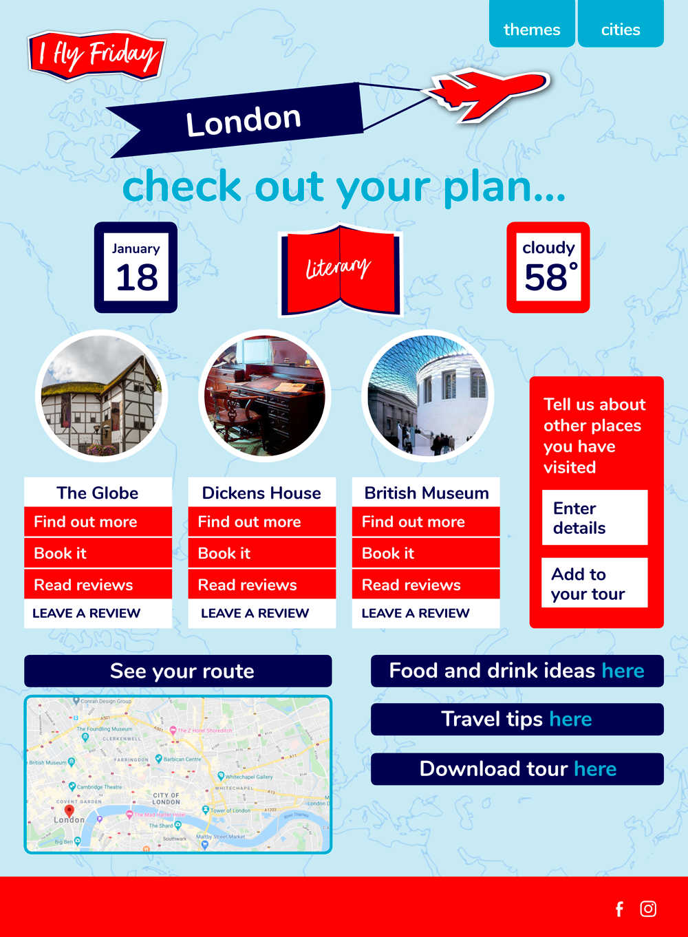 All design (UX and UI) for a start up travel site including visual direction, mini animations and html/css.